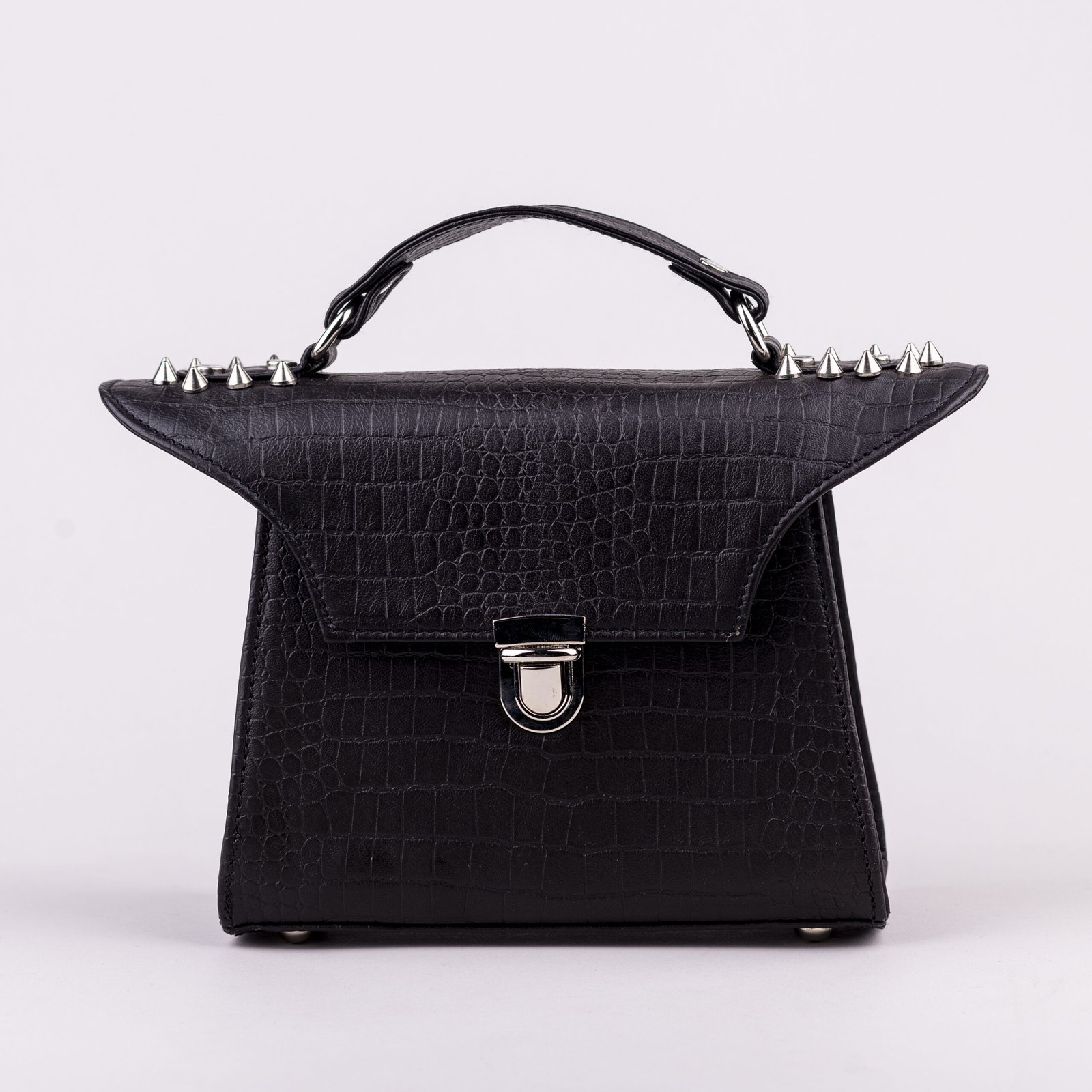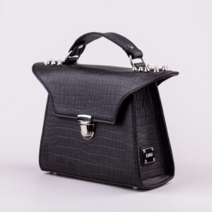 Hand crafted in genuine leather, embellished with metal rivets. The inside is lined with premium quality french suede lining. Accompanied with a top handle and adjustable leather crossbody strap.